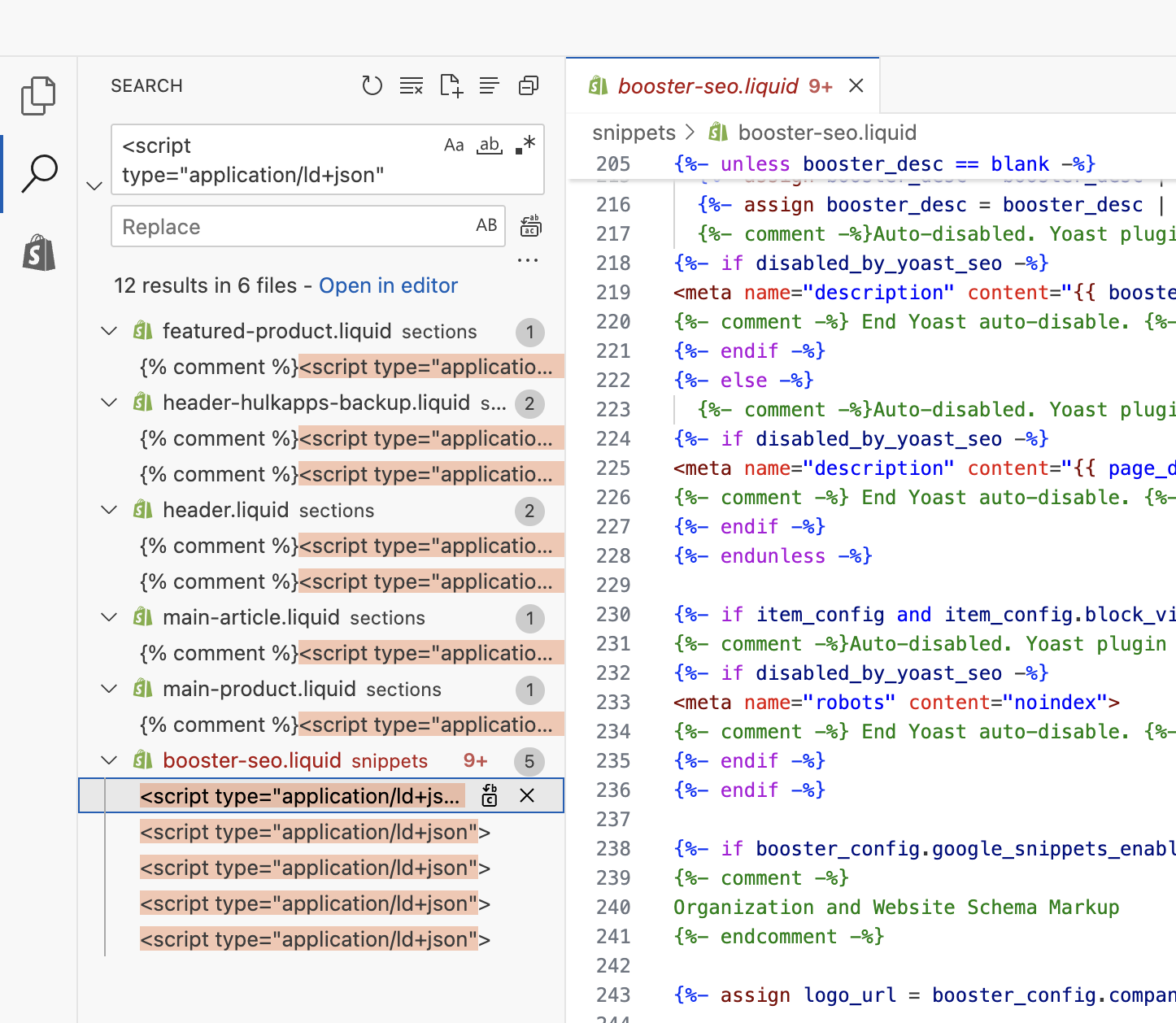 <script type="application/ld+json"> ... </script>code blocks to safely disable the existing schema without deleting it.You can press: